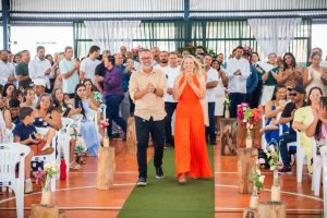 A cerimônia contou com a presença do prefeito Enilson Rios, da primeira-dama Luiza Rios, e dos vereadores Daniel Leiteiro, Sillas da Ambulância, Irmão Lázaro e Cléo Camargo, que prestigiaram a solenidade, parabenizaram os noivos e reforçaram a importância da ação para a comunidade.