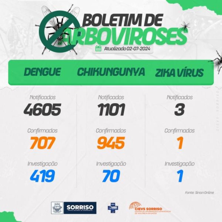 De acordo com o Boletim de Arboviroses, emitido pela Secretaria de Saúde e Saneamento nesta terça-feira (2 de julho). Desde o início do ano, foram notificados 4.605 casos suspeitos de dengue. Destes, 707 foram confirmados e outros 419 ainda estão sob investigação. Os demais foram descartados.
