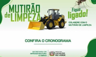 O mutirão de limpeza urbana segue com serviços de recolhimento de entulhos e resíduos, conforme cronograma estabelecido pela Prefeitura de Lucas do Rio Verde, por meio...