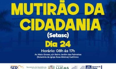 A população de Lucas do Rio Verde poderá participar de um Mutirão da Cidadania nesta próxima terça-feira (24). A ação será realizada no prédio do CadÚnico,...