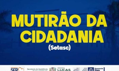 A população de Lucas do Rio Verde poderá participar de um Mutirão da Cidadania nesta próxima Segunda -feira (23). A ação será realizada no prédio do...