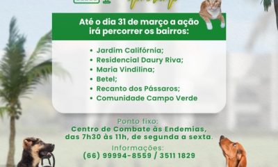 A Prefeitura de Sinop, por meio do departamento de endemias, da Secretaria de Saúde, iniciou no último dia 14, a campanha de vacinação antirrábica 2023, que...