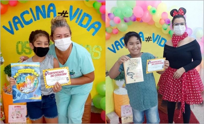 Crianças de 5 a 11 anos de idade receberam livros, com conteúdos infantis próprio para a faixa etária, como forma de incentivo à leitura e a...