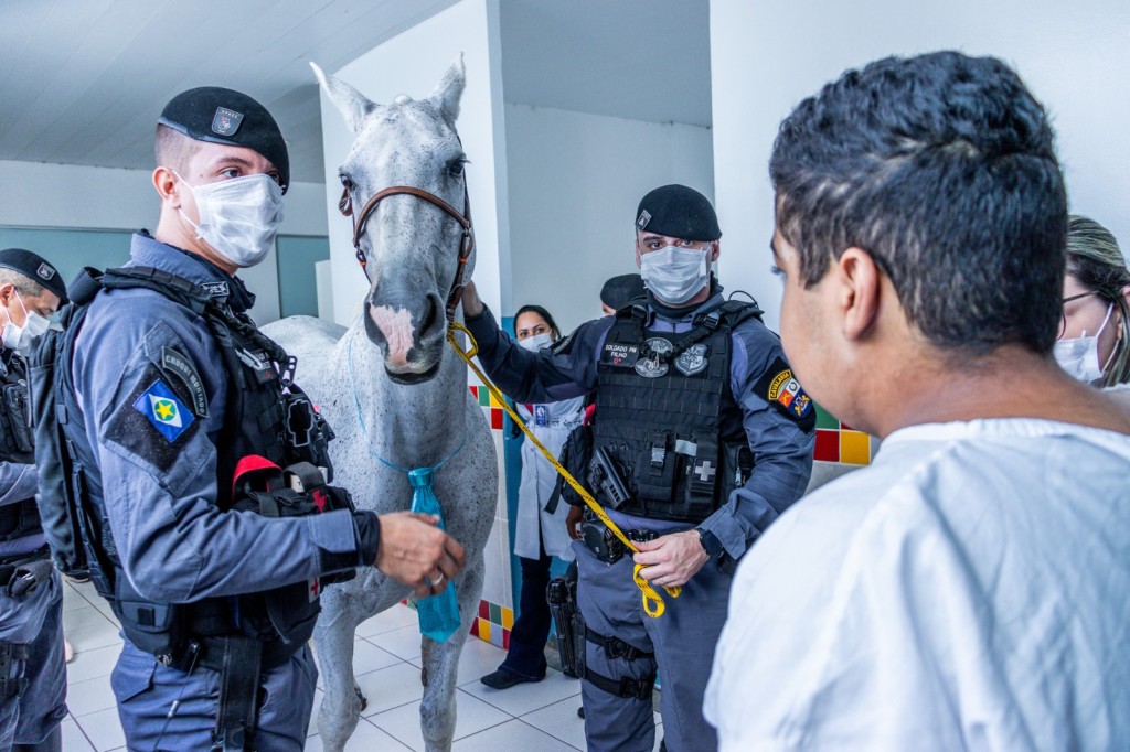 O soldado também ressalta que a ideia é fazer com as visitas se tornem periódicas, e que o contato com os cavalos traz diversos benefícios aos pacientes.