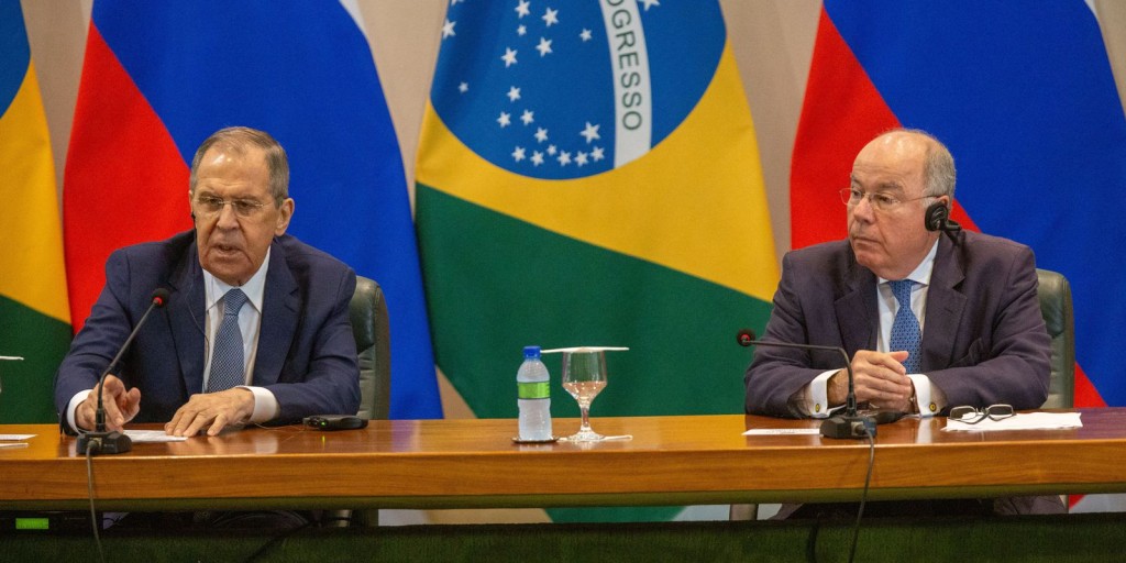 O ministro das Relações Exteriores da Rússia, Sergei Lavrov, agradeceu o empenho do Brasil para negociar o fim da guerra na Ucrânia e disse que o governo russo está interessado em solucionar o conflito o mais rápido possível. Lavrov se reuniu, nesta segunda-feira (17), com o ministro das Relações Exteriores do Brasil, Mauro Vieira, no Palácio do Itamaraty, em Brasília.