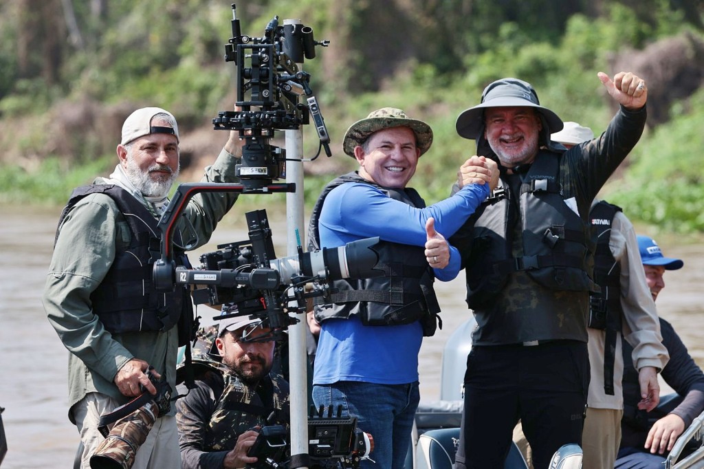 Junto com o governador e com os diretores Lawrence Wahba e Mike Bueno, o cineasta registrou a onça Marcela caçando um jacaré na região de Porto Jofre.