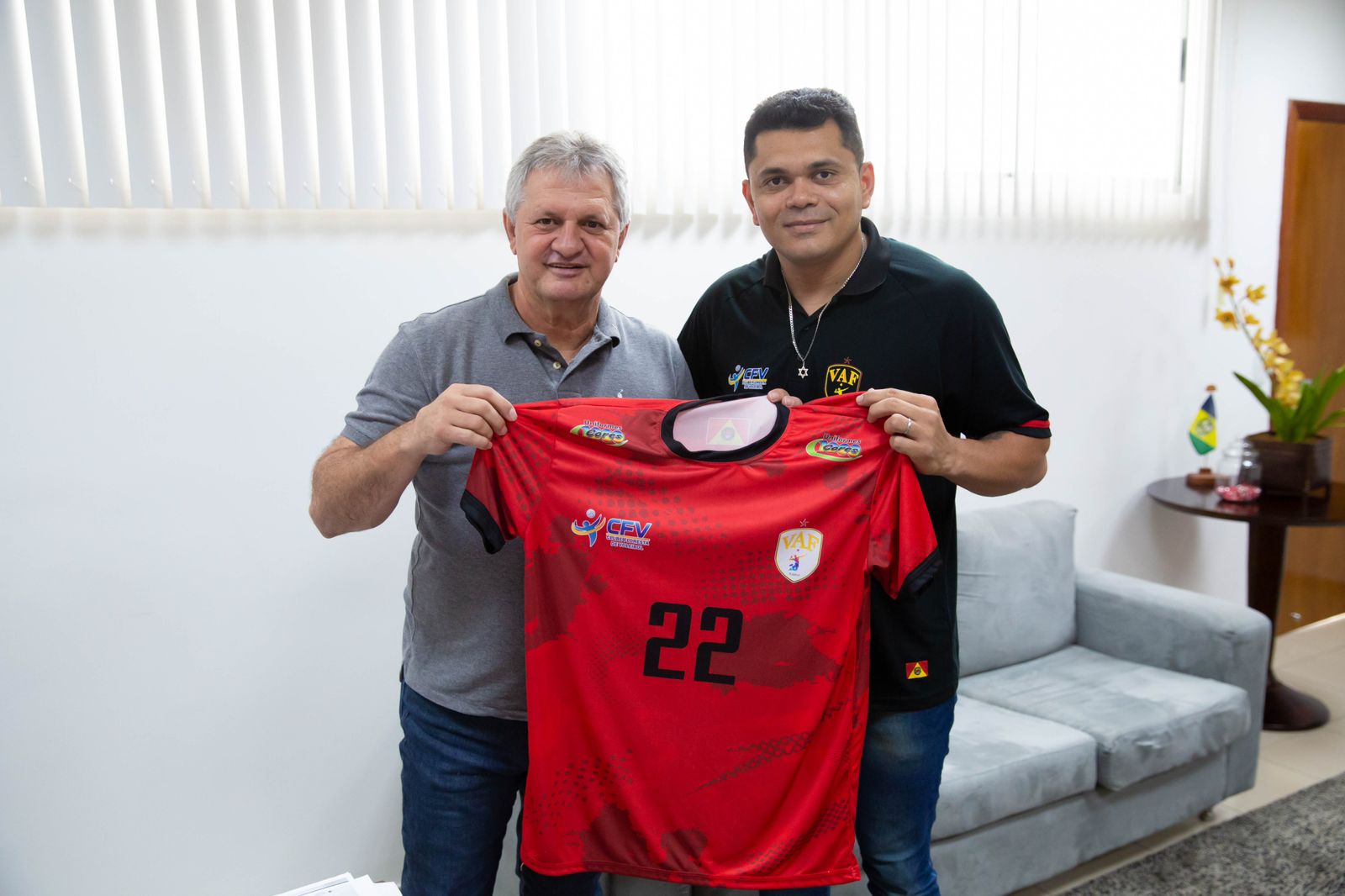 Na manhã desta segunda-feira (13), Deputado Estadual Dilmar Dal Bosco (UB) recebeu a visita do técnico e supervisor do VAF – Voleibol Alta Floresta, Amaury Nogueira, que fez história ao conquistar o título da Superliga C de Voleibol, em uma competição que marcou a primeira vez que Alta Floresta sediou uma etapa do torneio, de 1 a 4 de novembro. Com a participação de cinco equipes, o VAF demonstrou um desempenho excepcional, superando adversários e conquistando o campeonato diante de sua apaixonada torcida.