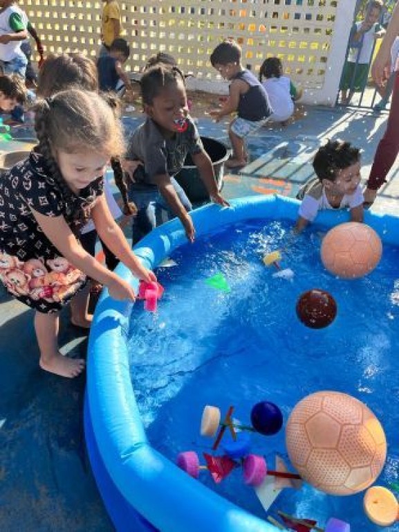 No Centro Educacional Infantil Cuiabano (CMEI) Eng. Oscar Amélito as atividades incluem banhos de mangueira, brincadeiras nas piscinas, muito suco de frutas e água. Segundo a diretora da unidade, Denis Rodrigues depois de passarem pelo momento de recreação as crianças ficam mais tranquilas e concentradas nas atividades propostas em sala de aula. Nesta quinta-feira (24), dentro da rotina universalizada, o banho foi de mangueira com distribuição de suco de manga.