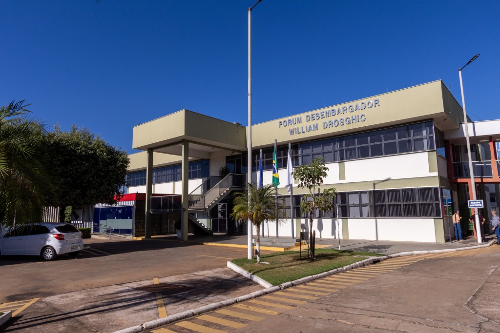 #Paratodosverem. Esta matéria possui recursos de texto alternativo para promover a inclusão das pessoas com deficiência visual. Primeira imagem: Fachada do Fórum de Rondonópolis Desembargador William Drosghic. O prédio é formado por dois pavilhões interligados por uma passarela suspensa onde estão distribuídas as Varas Cível e Criminal. A frente da sede estão hasteadas as bandeiras do Brasil ao centro, e as bandeiras de Mato Grosso a esquerda e a do Poder Judiciário de Mato Grosso a direita. Segunda imagem: Desembargadora Nilza Maria Pôssas de Carvalho ao centro da foto, tendo ao seu lado direito o juiz diretor do fórum Francisco Rogério Barros e ao seu lado esquerdo o juiz Wanderlei José dos Reis. Terceira Imagem: Fachada do Cartório localizado no bairro Vila Operária. A frente do prédio possui uma grande faixa colorida na cor marrom escuro com as palavras ‘Cartório Vila Operária – Serviço Notorial e Registral de Rondonópolis MT’. Na extrema esquerda, uma logomarca representando o nascer do sol no horizonte.