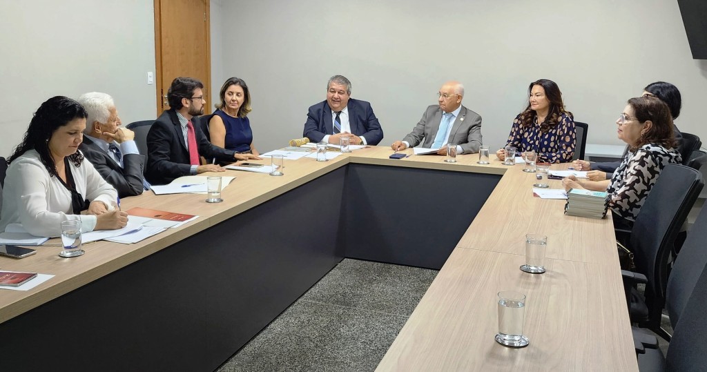 #ParaTodosVerem – Esta matéria possui recursos de texto alternativo para promover a inclusão das pessoas com deficiência visual. Descrição das imagens: Foto 1 – membros da Ceja estão todos sentados em uma mesa de reunião.