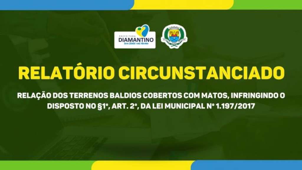 Relatório Circunstanciado (art.5º, §2º da lei municipal nº 1.197/2017), com área de abrangência da constatação sendo: Bairro São Cristovão e Loteamento Solar de Diamantino.