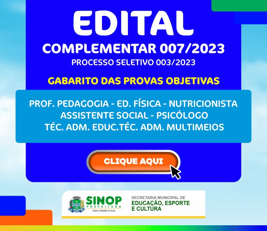 Cerca de 3.993 inscritos participaram do processo seletivo simplificado nº003/2023, da Secretaria de Educação, realizado no domingo (10), para cargos de professores, nutricionistas, psicólogos, assistentes sociais e técnicos administrativos. Os candidatos que fizeram as provas objetivas podem conferir o gabarito abaixo.