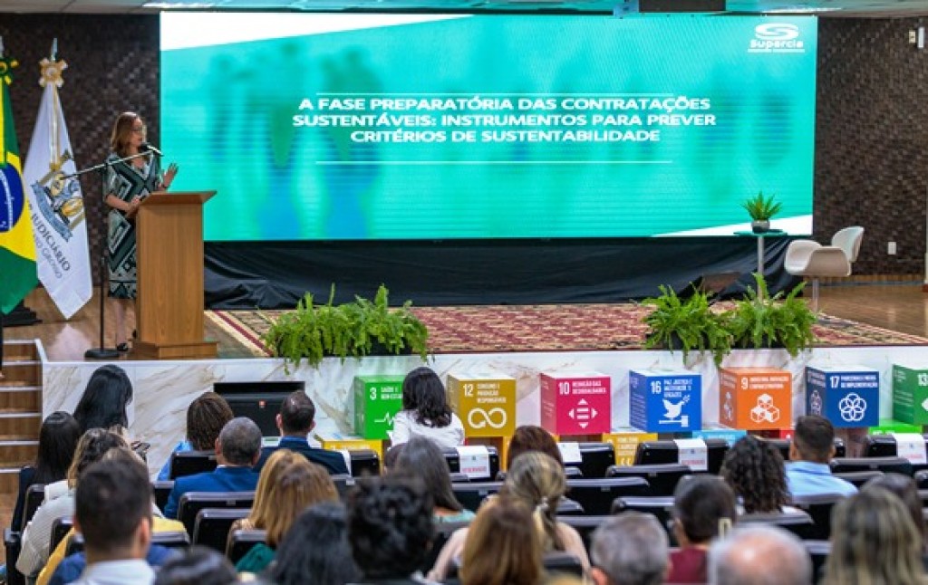 Na tarde desta segunda-feira (30 de setembro), primeiro dia do IX Encontro de Sustentabilidade e do I Seminário de Mudanças Climáticas, que ocorre até terça-feira (1º de outubro), a mestre em Direito Administrativo, advogada e professora Tatiana Camarão, apresentou a palestra “A fase preparatória das contratações sustentáveis: instrumentos para prever critérios de sustentabilidade”. O evento é realizado pelo Poder Judiciário de Mato Grosso, por meio do Núcleo de Sustentabilidade, e ocorre no auditório “Gervásio Leite” do Tribunal de Justiça, em Cuiabá.