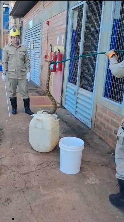 A serpente foi encontrada dentro de um balde utilizado pela equipe de segurança do trabalho da empresa.