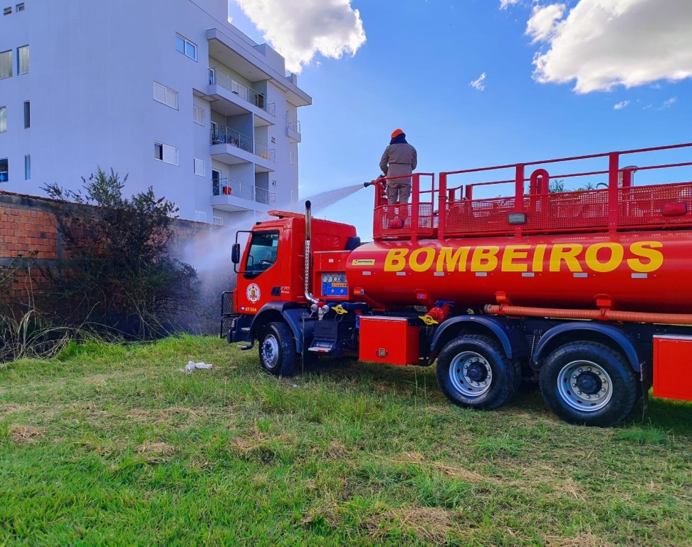 Corpo de Bombeiros Militar combate foco de incêndio em terreno baldio