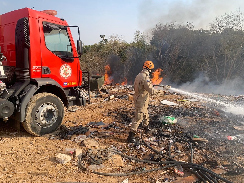 Corpo de Bombeiros Militar combate incêndio em lixão em Primavera do Leste