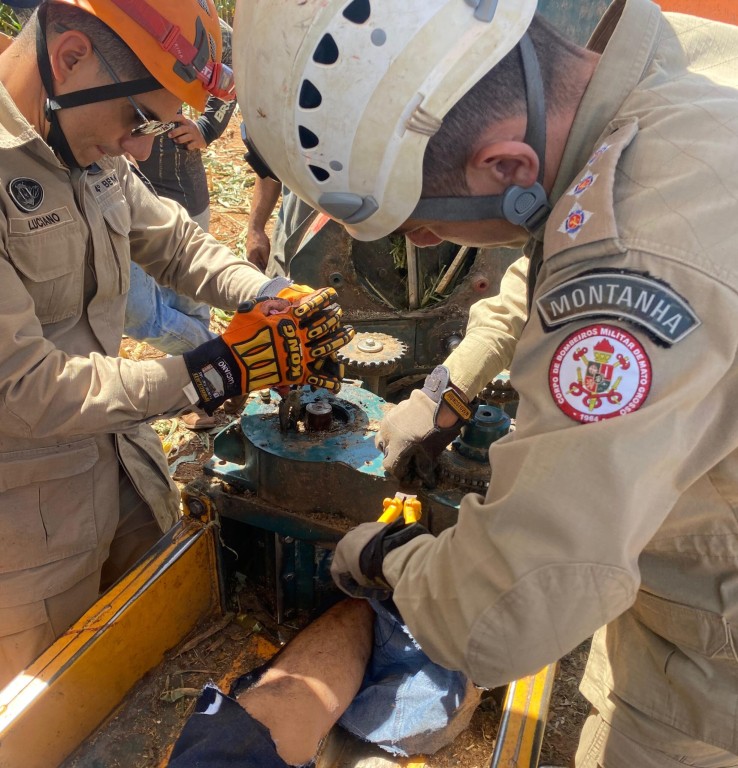 Corpo de Bombeiros Militar resgata trabalhador rural que ficou com o pé preso em máquina agrícola
