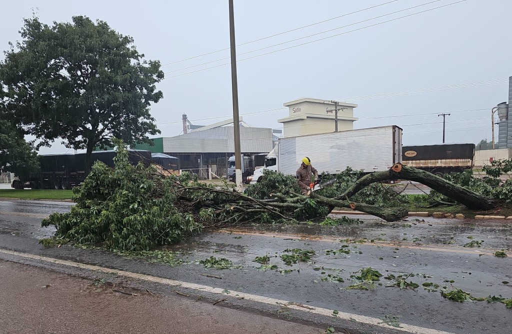 O Corpo de Bombeiros Militar de Mato Grosso (CBMMT) foi acionado, na tarde deste sábado (09.11), para realizar o corte de uma árvore que estava interditando a BR-070, no centro do município de Campo Verde (a 136 km de Cuiabá).