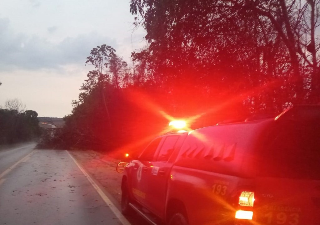 O Corpo de Bombeiros Militar de Mato Grosso (CBMMT) foi acionado pela Polícia Rodoviária Federal (PRF), na tarde desta quinta-feira (10.10), para realizar o corte de árvores que estavam interditando a BR-070, próximo a Campo Verde (a 136 km de Cuiabá).