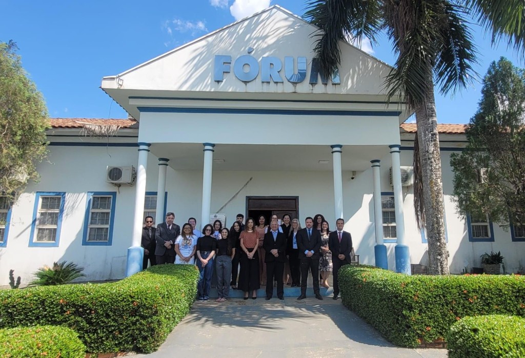 #Paratodosverem. Esta matéria possui recursos de texto alternativo para promover a inclusão de pessoas com deficiência visual. Descrição das imagens: Foto 1: horizontal colorida com a comitiva da Corregedoria Participativa, magistrado e servidores da Comarca de Colniza em frente ao Fórum. Foto 2: horizontal colorida juiz diretor dá boas-vindas a comitiva e agradece servidores pelo empenho. Foto 3: horizontal colorida gestora fala sobre a importância do olhar da administração para comarcas do interior. Foto 4: horizontal colorida. Corregedor posa ao lado do defensor-público e assessores. Foto 5: horizontal colorida. O corregedor e a juíza auxiliar Cristiane Padim se reúnem com o prefeito no Paço Municipal.