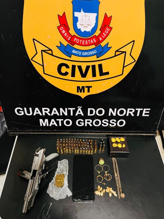 Criminoso flagrado com arma, munições e joias é preso pela Polícia Civil em Guarantã do Norte