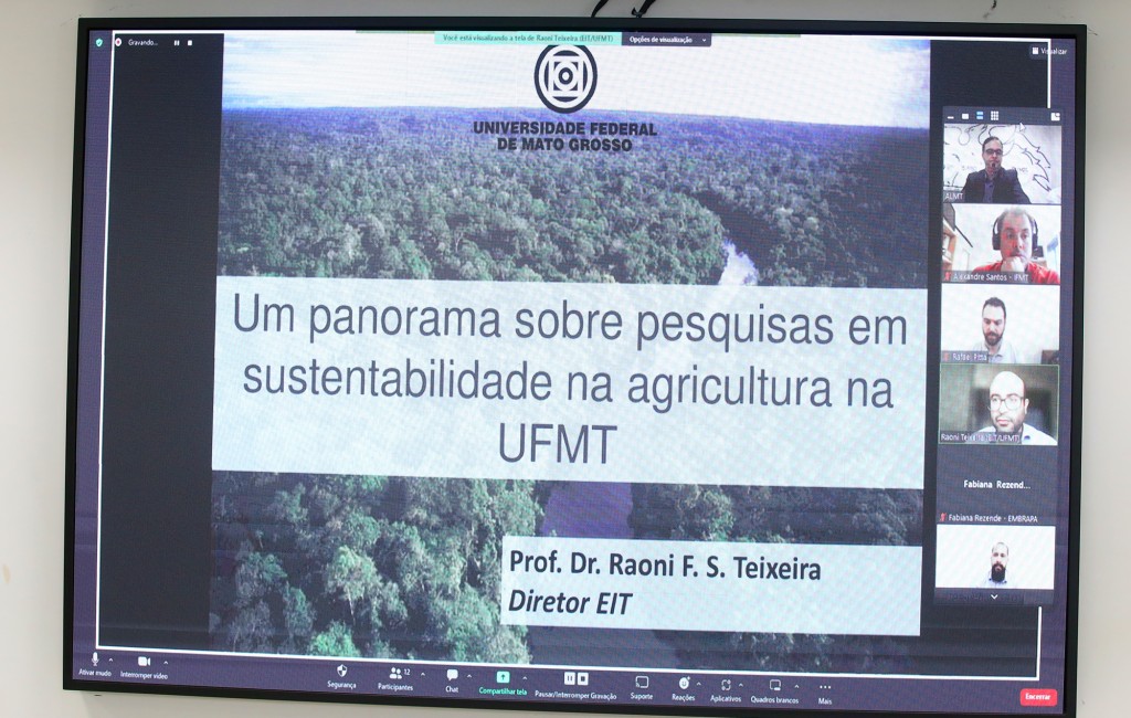 O representante do escritório de Inovação Tecnológico da Universidade Federal de Mato Grosso (UFMT), Raoni Florentino da Silva Teixeira, apresentou um panorama das pesquisas em sustentabilidade que a Universidade Federal de Mato Grosso (UFMT) está desenvolvendo nos municípios mato-grossenses.