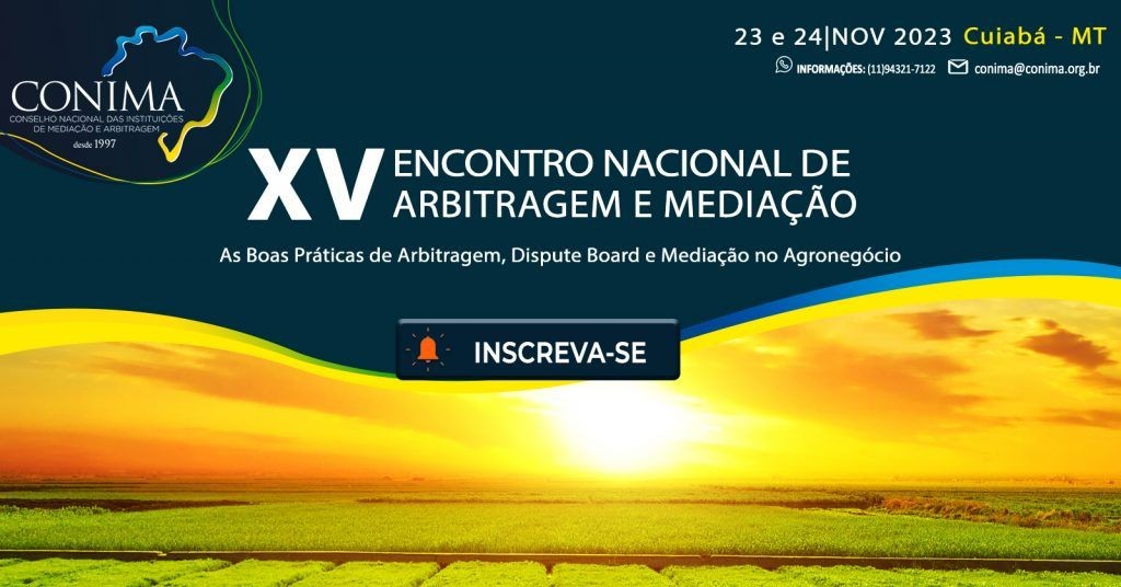 “As Boas Práticas de Arbitragem, Dispute Board e Mediação no Agronegócio” é o tema central do XV Encontro Nacional de Arbitragem e Mediação, que será realizado em Cuiabá nos dias 23 e 24 de novembro. O objetivo é fomentar e fortalecer a cultura dos meios privados de solução de controvérsias e debater temas práticos do dia a dia dos MESCs (Mecanismos Extrajudiciais de Solução de Controvérsias) com operadores especialistas de todo o país. O evento é realizado pelo Conselho Nacional das Instituições de Mediação e Arbitragem (Conima) e tem o apoio do Poder Judiciário de Mato Grosso.