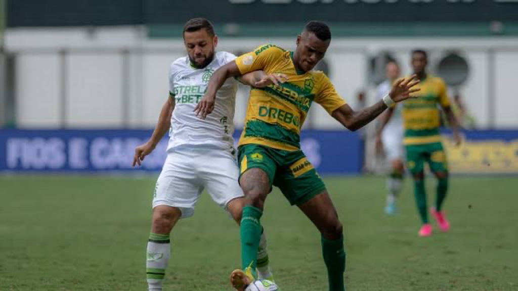 O América começou o jogo pressionando o Cuiabá e, logo nos primeiros minutos, Aloísio acertou o travessão. Não demorou muito para o centroavante do time da casa abrir o placar. O gol aconteceu aos 11 minutos de jogo.
