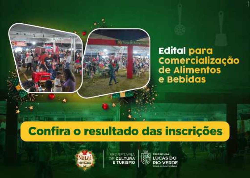 A Secretaria de Cultura e Turismo de Lucas do Rio Verde publicou, nesta terça-feira (07), o resultado das inscrições do edital de credenciamento para a comercialização de alimentos e bebidas no evento do Natal.