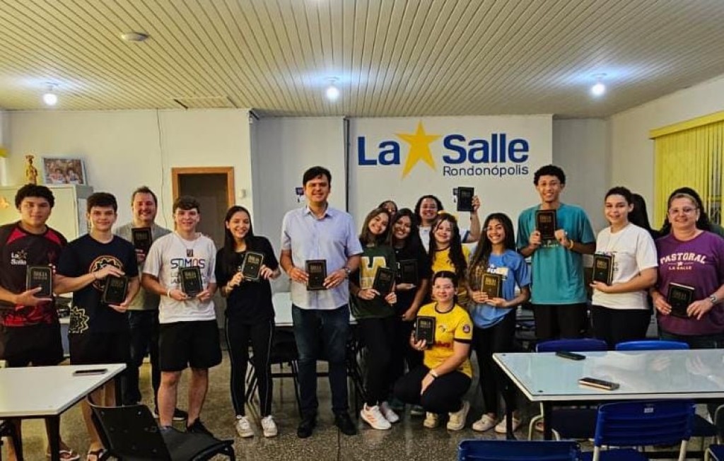 O deputado estadual Thiago Silva, em comemoração ao Dia da Bíblia instituído pela Lei Municipal nº 021/2017 de sua autoria como ex-vereador de Rondonópolis por dois mandatos, desde domingo (8), tem realizado a entrega de mais de 500 exemplares da Sagrada Escritura para diversas instituições do município. Entre os beneficiados estão o Centro Socioeducativo, escolas confessionais, como a Escola Estadual La Salle, o Hospital Paulo de Tarso, a Comunidade Divina Providência, entre várias outras igrejas locais.