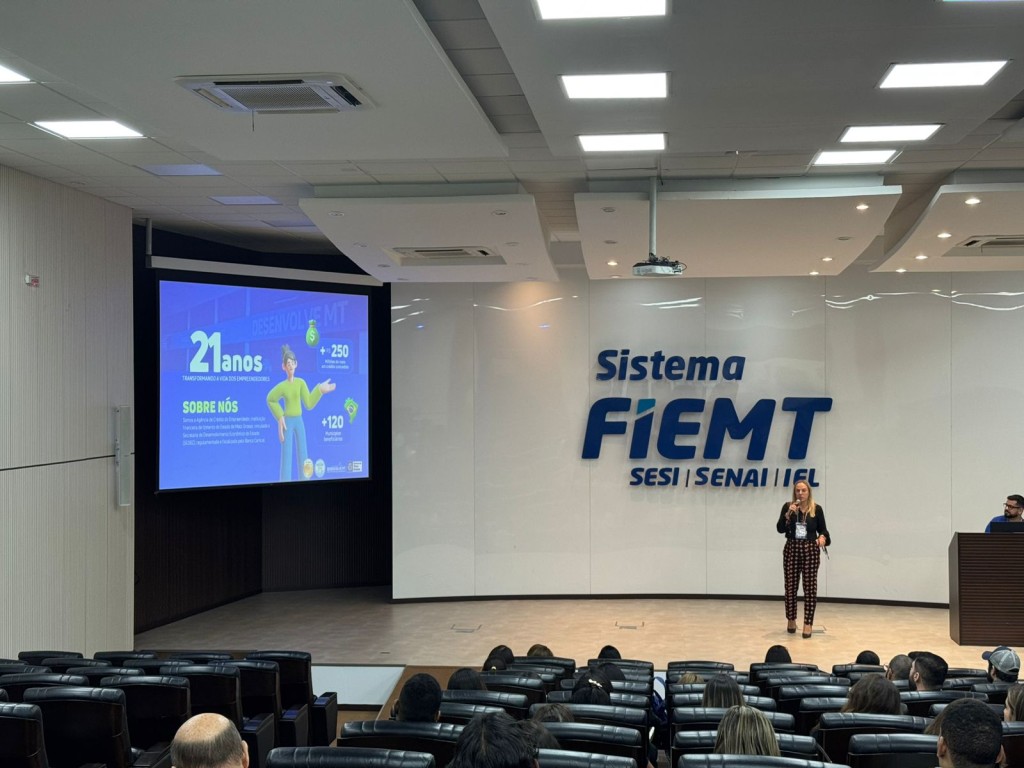 A superintendente de Crédito da Desenvolve MT, Lizandra Helmann, integrou o painel de apresentações destacando as oportunidades de financiamento voltadas ao setor produtivo e o papel da agência no estímulo ao desenvolvimento econômico e no fortalecimento da indústria mato-grossense.