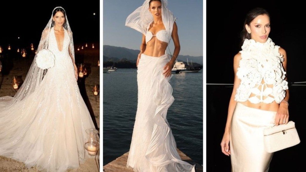 Foto: Reprodução/Instagram – Vestido Andrea AlmeidaFoto: Reprodução/Instagram – Look de Alexander McQueenFoto: Reprodução/Instagram – Look de Gaurav Gupta