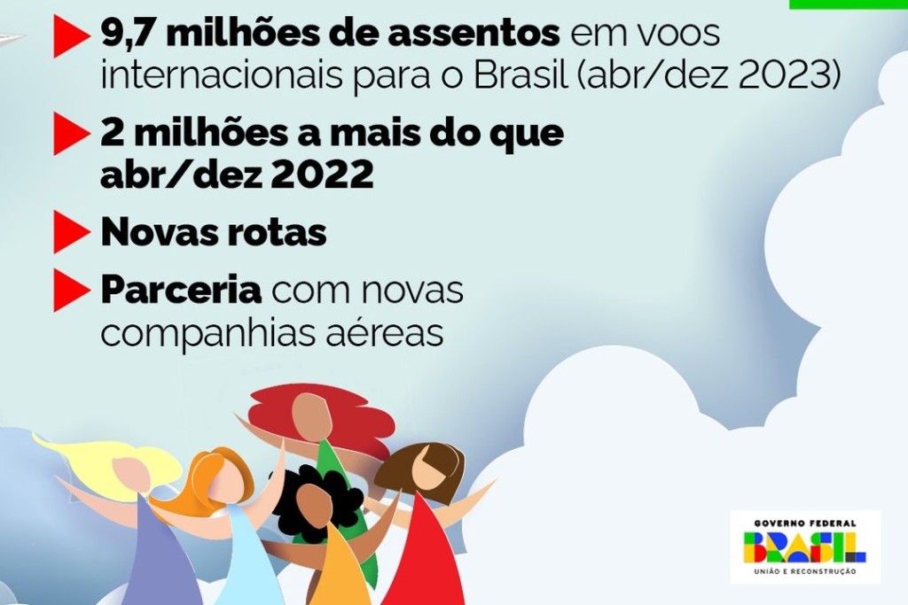 Entre abril e dezembro deste ano, estão programados 9,7 milhões de assentos em voos internacionais com destino ao Brasil. O aumento é de 26%, ou 2 milhões de novos assentos quando comparado com o mesmo período do ano passado. A informação consta em relatório da Agência Brasileira de Promoção Internacional do Turismo (Embratur), consolidado com dados da ForwardKeys – um dos principais provedores de análise de dados de viagens do mundo.