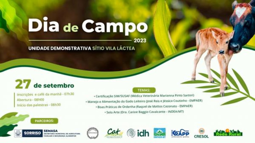 O Dia de Campo Unidade Demonstrativa Sítio Via Láctea conta com apoio do Clube Amigos da Terra (CAT), Empresa Mato-grossense de Pesquisa, Assistência e Extensão Rural (Empaer), IDH Transforming Markets, Krapp Melhoramento Genético, Cooperativa Cresol e da Rede Rural Distribuidora.