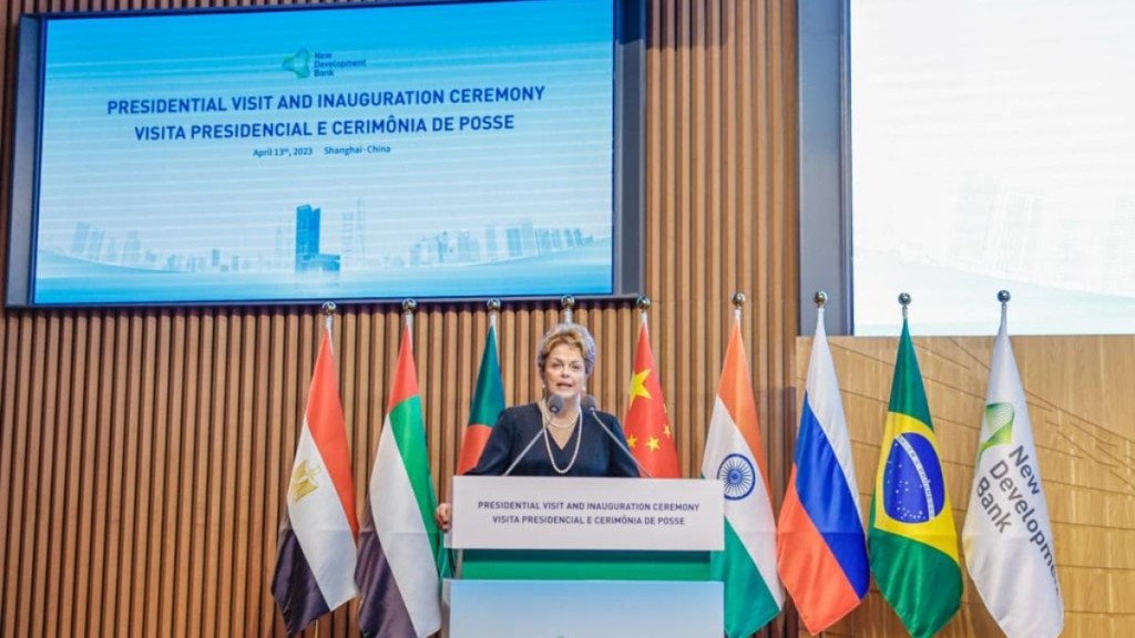 A ex-presidente Dilma Rousseff declarou nesta quinta-feira (13), ao assumir formalmente a posse do NBD (Novo Banco de Desenvolvimento) , o banco dos Brics (Brasil, Rússia, Índia, China e África do Sul), que irá buscar “modelos de financiamento inovadores”. Também na cerimônia, o presidente Luiz Inácio Lula da Silva (PT) sugeriu reduzir a dependência do dólar americano.