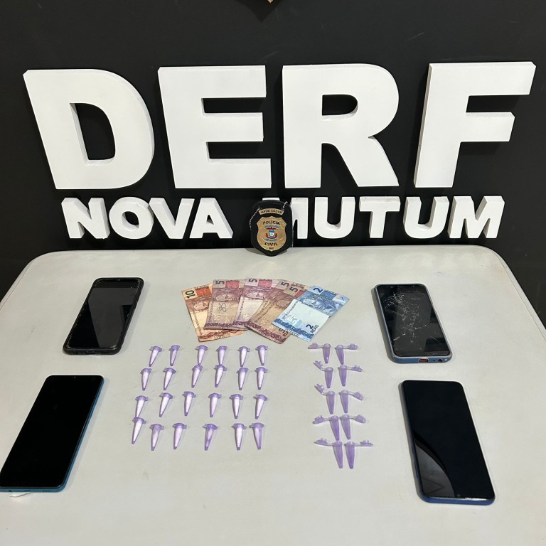 Três pessoas, entre elas uma menor de idade, suspeitas de envolvimento com o comércio de entorpecentes em Nova Mutum (264 km ao norte de Cuiabá), foram detidas em flagrante pela Polícia Civil, na tarde de terça-feira (22.08), em ação da Delegacia Especializada de Roubos e Furtos (Derf) do município.