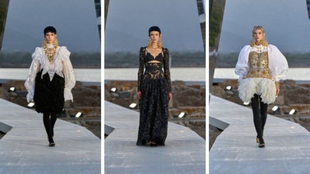 Nas passarelas, os destaques ficam com bordados tridimensionais e técnicas inspiradas na filigrana. Também chamam a atenção as capas meticulosamente feitas à mão a partir de tecidos tubulares de linho, lã e seda jacquard, que remontam à antiga arte da tecelagem da Sardenha.