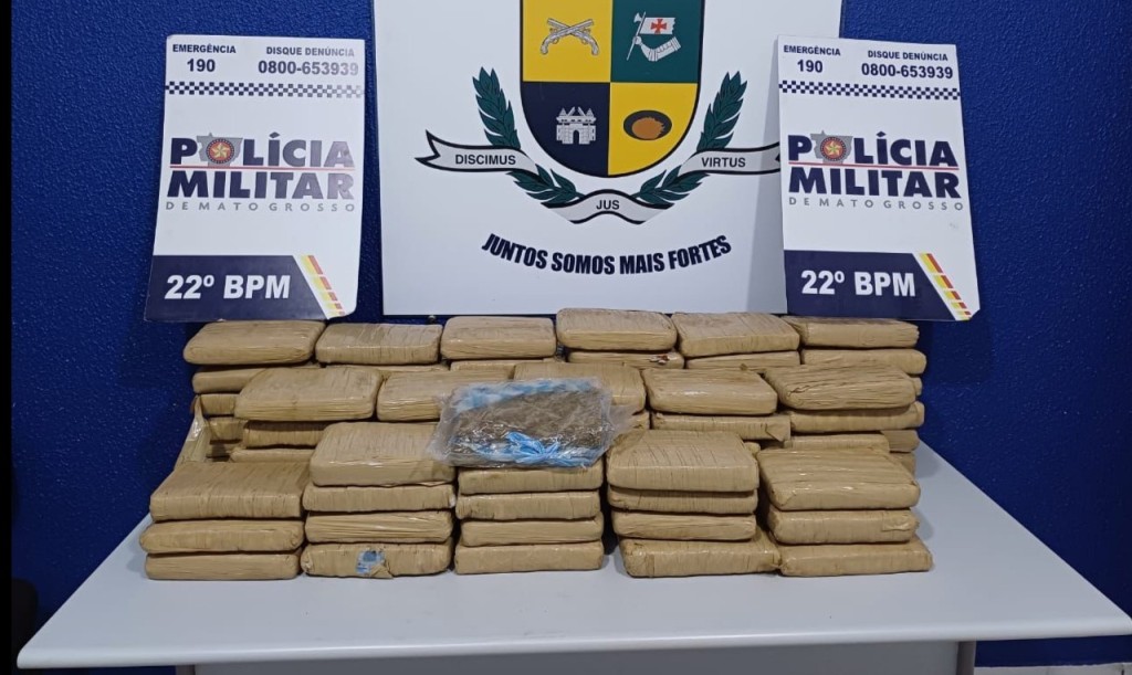 Policiais militares do 22º Batalhão apreenderam, na tarde desta terça-feira (09.01), 80 tabletes de maconha e prenderam dois homens, de 33 e 59 anos, suspeitos por tráfico de drogas, na MT-322, no município de Peixoto de Azevedo (673 km de Cuiabá). A carga estava escondida em um Chevrolet Montana com placas de Aparecida de Goiânia (GO).