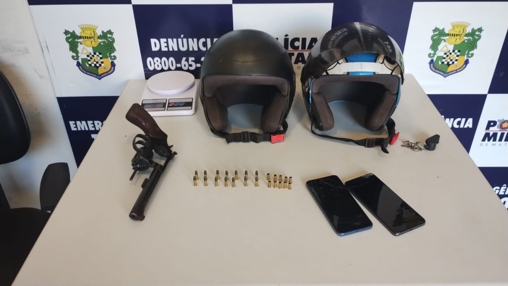 A dupla e os materiais apreendidos foram conduzidos à delegacia para registro do boletim de ocorrência.