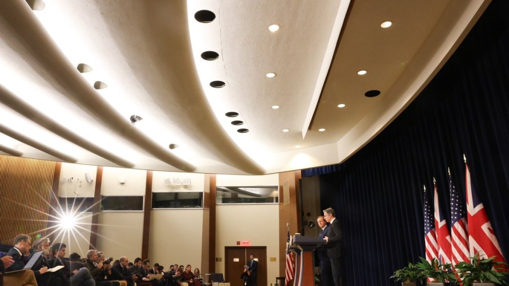 David Cameron e Antony Blinken fizeram uma declaração conjunta em Washington
