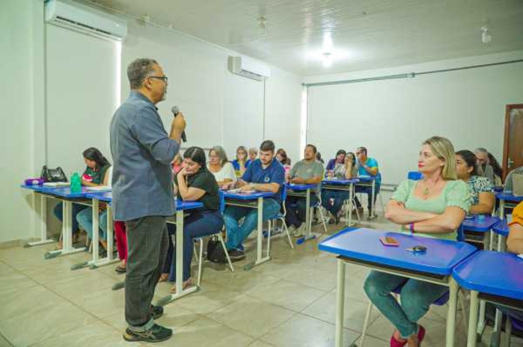 Mais de 100 professores, que atendem alunos das turmas do 5° ao 9° ano do ensino fundamental, participaram da aula ministrada pelo professor doutor em Ciências da Educação, Júlio Furtado.