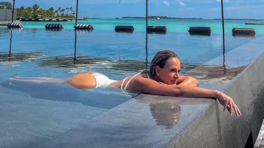 “Entrando no clima das férias….”, escreveu a apresentadora na legenda das fotos em que mostra que está com o bronzeado em dia, além do shape trincado.