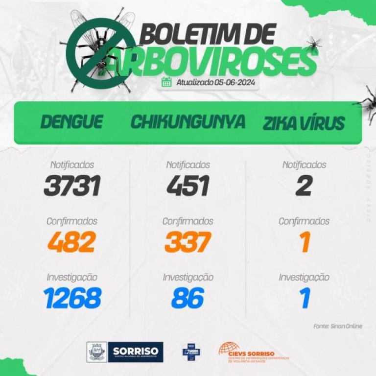 “Desde o início de maio os números estão em ascensão, principalmente para Chikungunya, nunca havíamos registrados tantos casos de Chikungunya. Em 2023, durante todo o ano foram apenas dois casos”, destaca a coordenadora de Vigilância em Saúde, Taynná Vacaro.