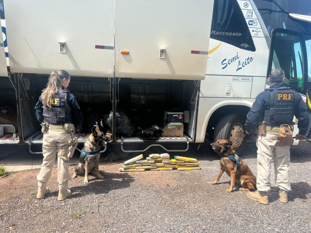 Na manhã de hoje (22), Polícia Rodoviária Federal (PRF), realizando atividade de enfrentamento ao tráfico de drogas na BR 364, em Cuiabá – MT, apreende maconha em um ônibus com auxílio de cão farejador.