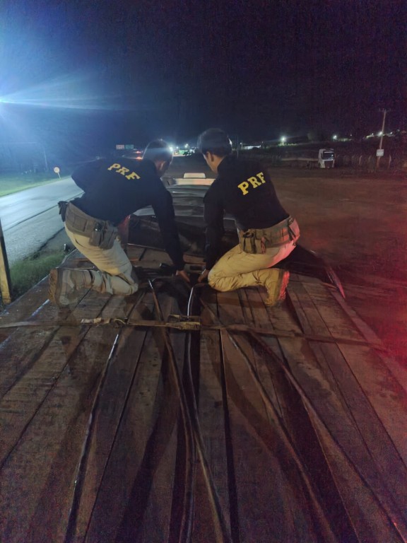 Em Diamantino MT, Polícia Rodoviária Federal (PRF) apreende 35,69 m³ de madeira sendo transportada de forma ilegal
