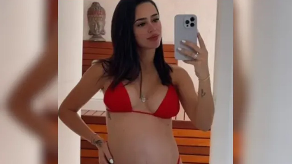 Bruna Biancardi, de 29 anos, mostrou a barriguinha de gravidez em um ensaio de uma marca de moda fitness, nesta terça-feira (12), encantou os seguidores. A modelo espera uma menina, Mavie, a primeira filha com o jogador de futebol Neymar, de 31.