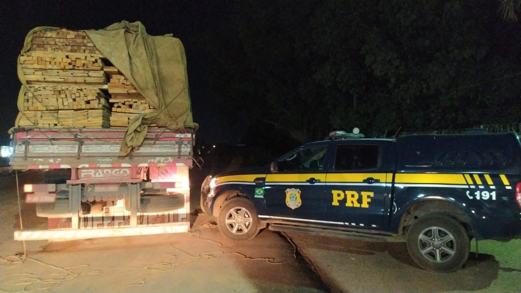 Durante fiscalização em Primavera do Leste-MT, na terça (03), a Polícia Rodoviária Federal (PRF) flagrou o condutor de um caminhão realizando transporte irregular de uma carga de 26.23 m³ de madeira serrada na BR 070.