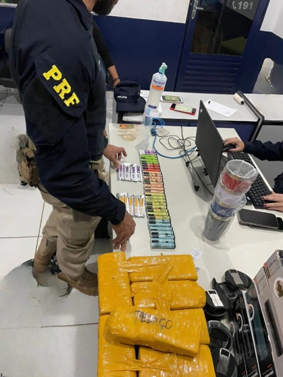 Na noite de ontem (16), a Polícia Rodoviária Federal (PRF), realizando atividades de enfrentamento ao tráfico de drogas na BR 163, no município de Rondonópolis/MT, apreende maconha e cigarro eletrônico em um ônibus.