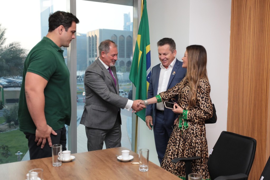 Durante reunião na embaixada brasileira em Abu Dhabi, nesta segunda-feira (04.11), com o governador Mauro Mendes e a embaixadora mundial do Jiu-Jitsu, a primeira-dama de Mato Grosso, Virginia Mendes, o embaixador Sidney Romero elogiou a atuação voluntária da primeira-dama do Estado com o programa SER Família Inclusivo e a atenção ao esporte jiu-jitsu, na categoria paradesportiva.