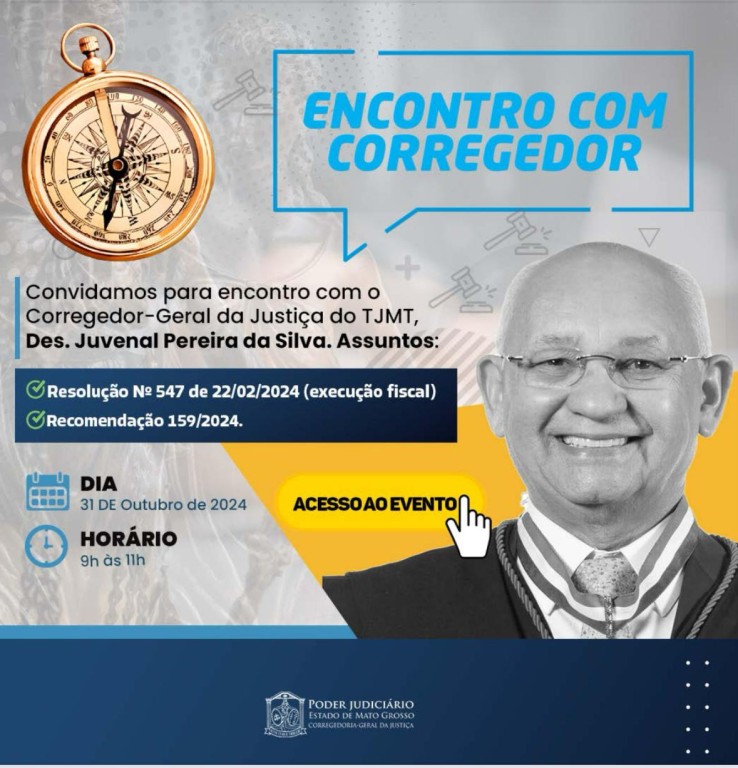 O evento virtual “Encontro com o Corregedor,” realizado na manhã desta quinta-feira (31), reuniu magistrados do estado de Mato Grosso para debater a Resolução nº 547 do Conselho Nacional de Justiça (CNJ), que buscar soluções para o acervo de processos de Execuções Fiscais e a Recomendação CNJ 159/2024, de prevenção à litigância abusiva.